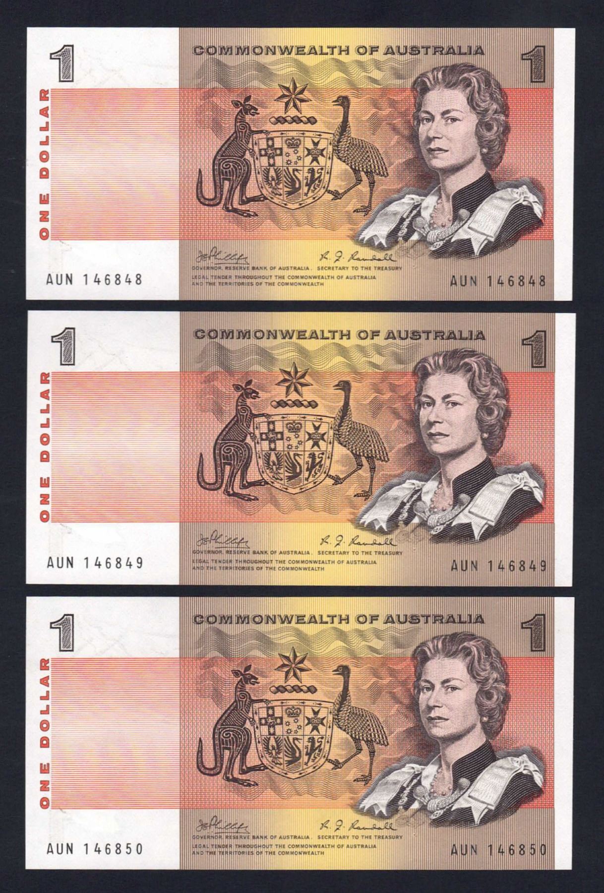 AUSTRALIA $1. 1969. Phillips-Randall. CONSECUTIVE TRIO