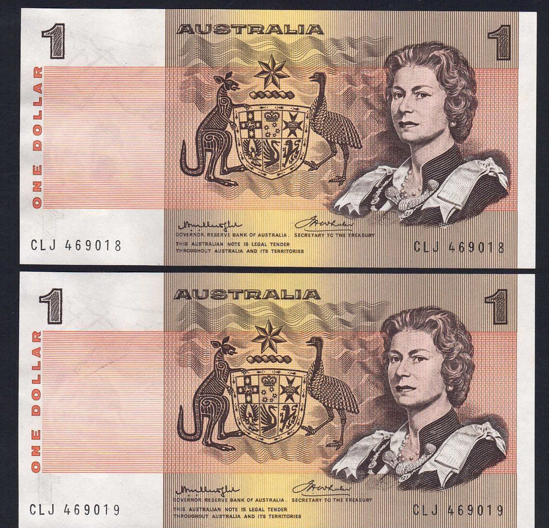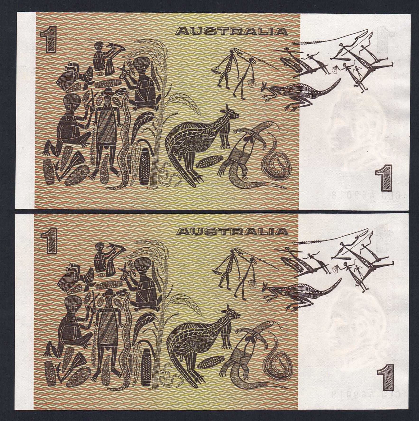 AUSTRALIA $1. 1976. Knight-Wheeler. Side Thread. CONSECUTIVE PAIR