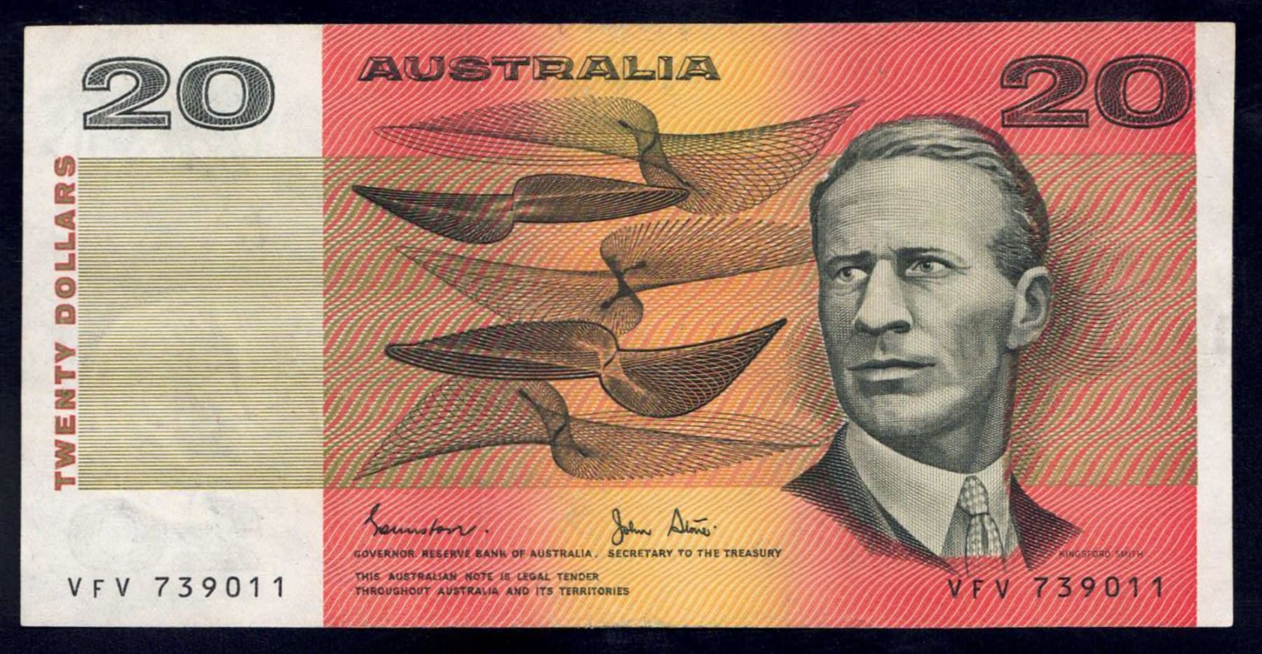 AUSTRALIA $20. 1983. Johnston-Stone. SCARCE 1ST PREFIX "VFV"