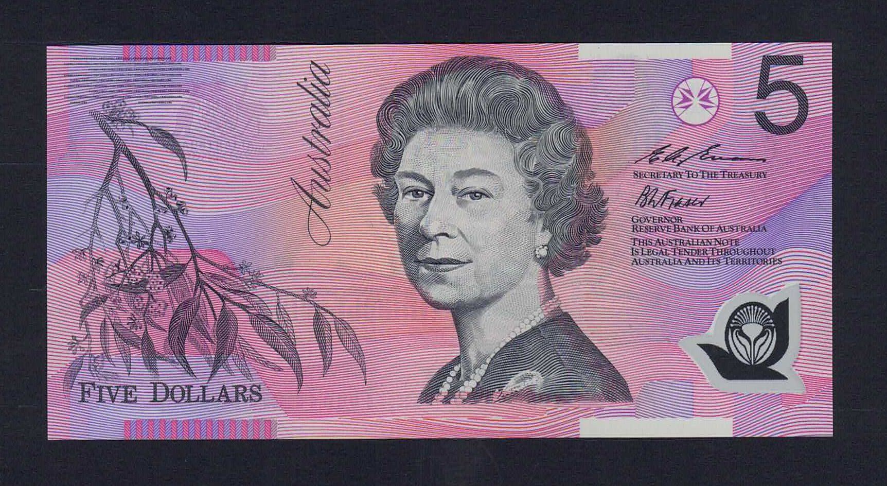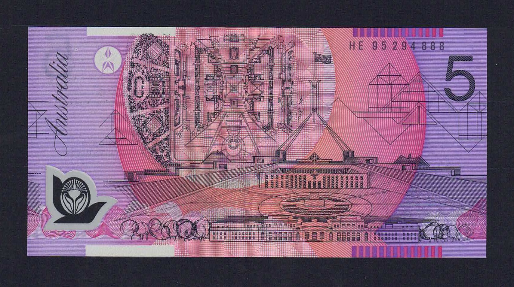AUSTRALIA $5. 1995. Fraser-Evans. Recoloured Issue. NARROW BANDS. LUCKY NO "888"
