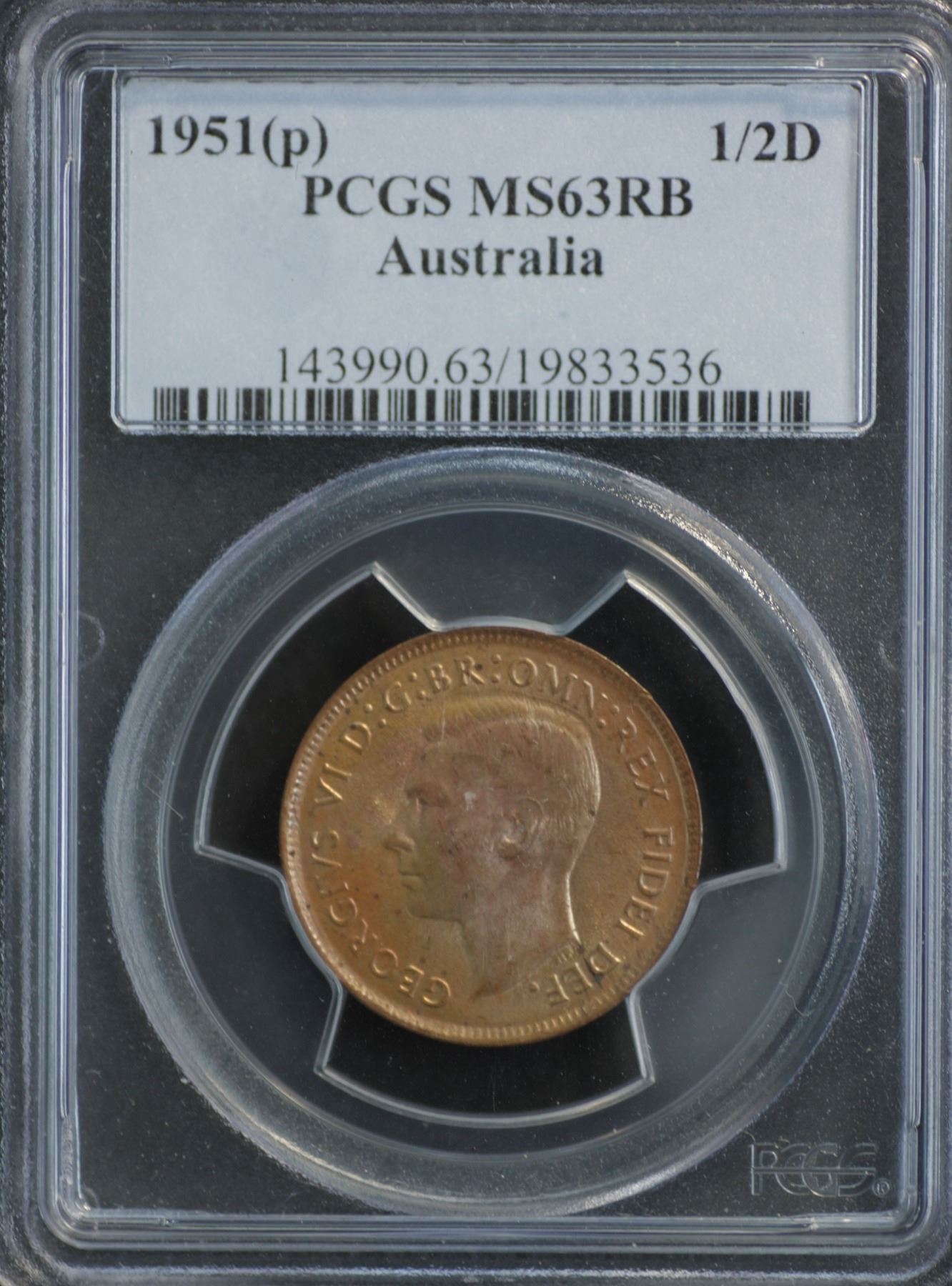 Australia Halfpenny 1951P, PCGS MS 63 RB