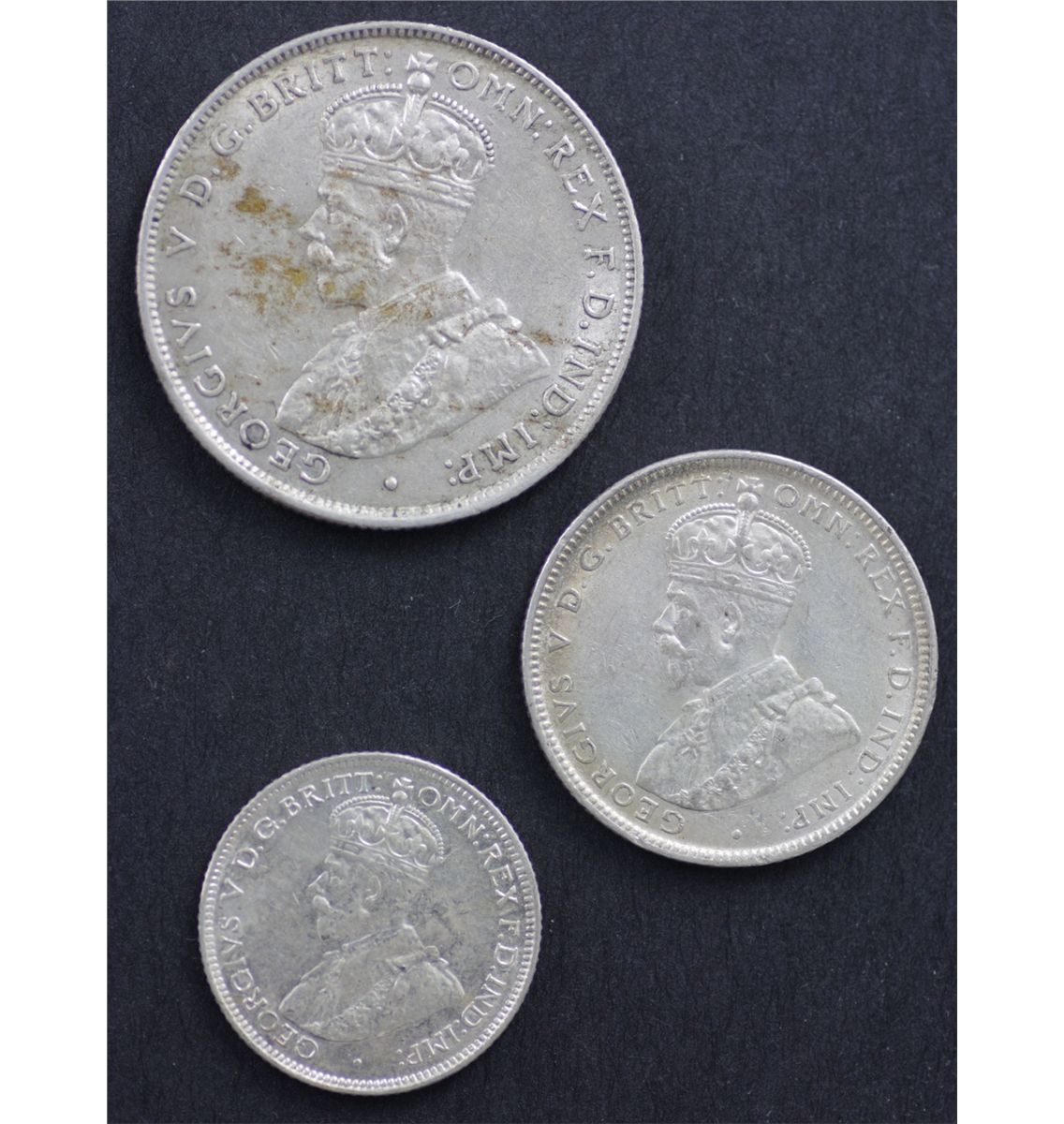 Australian 1931 Florin, 1917 Shilling, 1925 Sixpence.