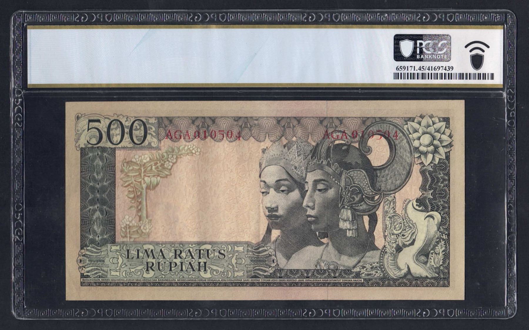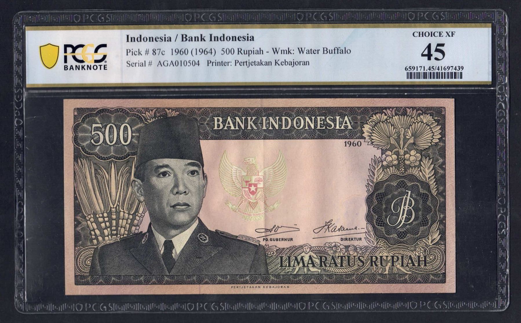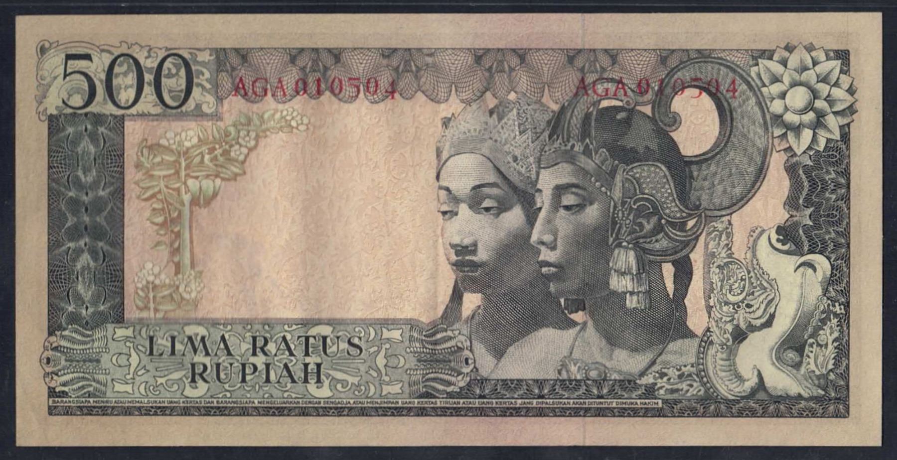 INDONESIA 500 Rupiah. 1960 (1964). Wmk Water Buffalo. PREFIX "3 LETTERS"