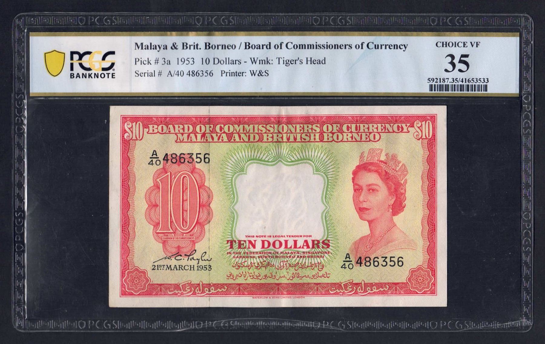 MALAYA & BRITISH BORNEO 10 Dollars. 21.3.1953. QEII PORTRAIT